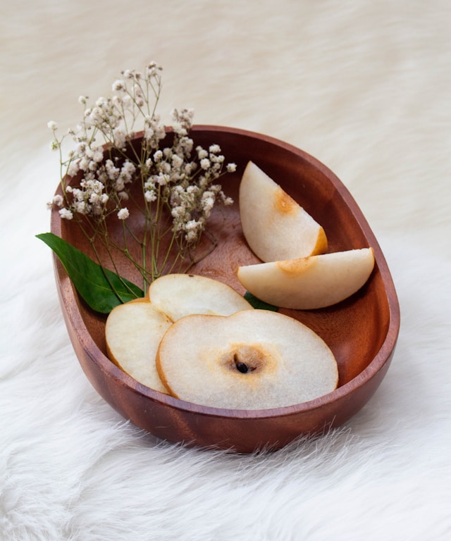 배는 기관지를 보호하고 가래를 삭이는 효과가 있습니다. 특히 배즙을 따뜻하게 데워 꿀과 함께 마시면 기침을 완화하는 데 도움이 됩니다.