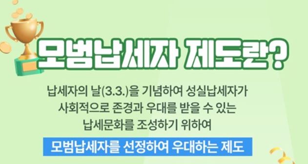 - 특히, 경제 성장과 국가 발전에 기여한 성실 납세자를 격려하고, 세금이 어떻게 사용되는지를 알리는 데 초점을 두고 있습니다.