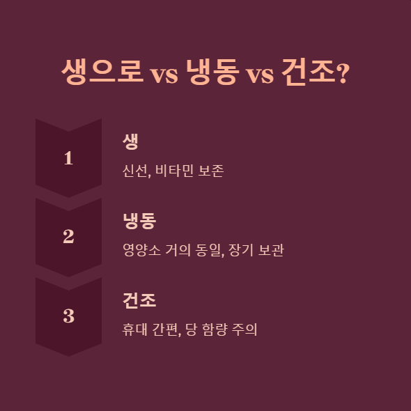 | 항산화, 면역력 증진, 심혈관 건강 | 알레르기, 혈당 변화, 혈액 응고 문제 | 하루 100~150g (한 줌) |