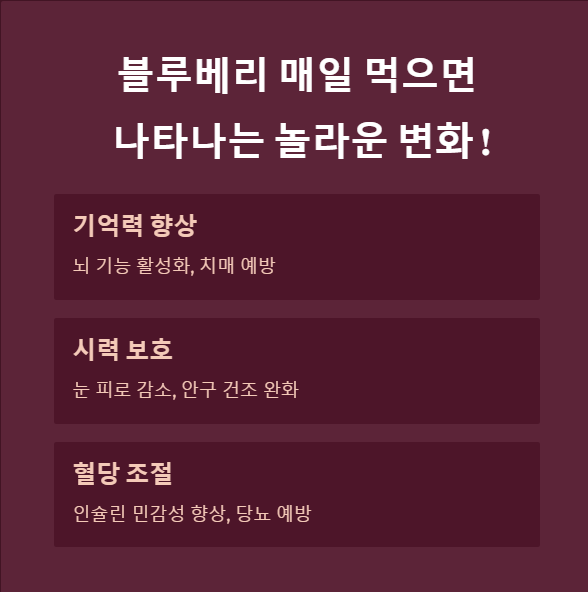 | 블루베리 주요 영양소 | 안토시아닌, 비타민 C, 섬유질, 망간 등 |