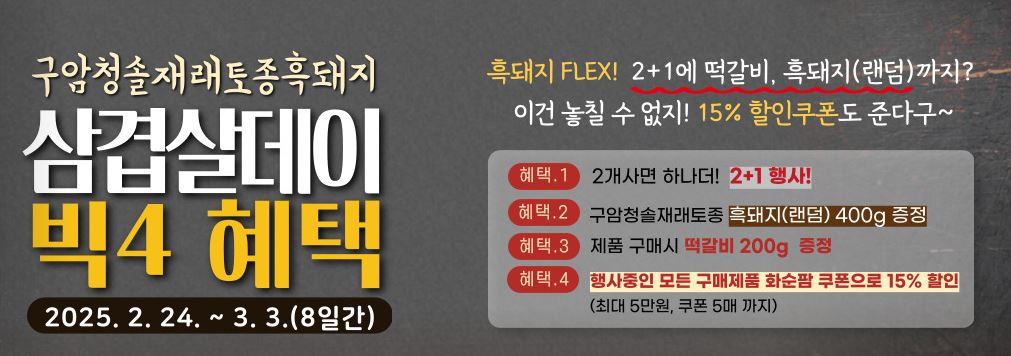 ● 행사 품목: 국내산 흑돼지 삼겹살, 목살