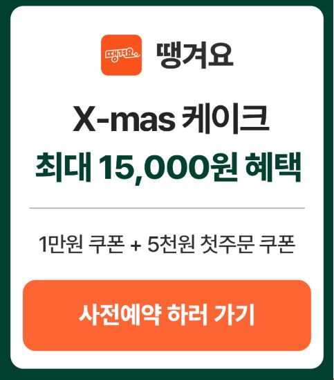 | 땡겨요 앱 크리스마스 케이크 할인 사전 예약 총정리 (0) | 2024.12.09 |