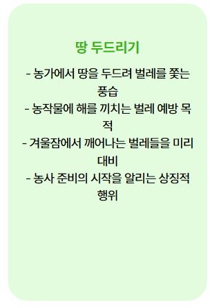 이는 농작물에 해를 끼치는 벌레들이 깨어나기 전에 미리 예방하려는 의미를 담고 있습니다.