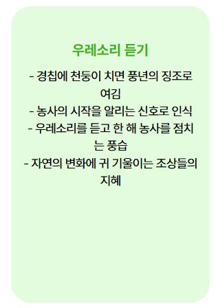특히, 이때 들리는 천둥은 농사의 시작을 알리는 신호로 여겨졌습니다.