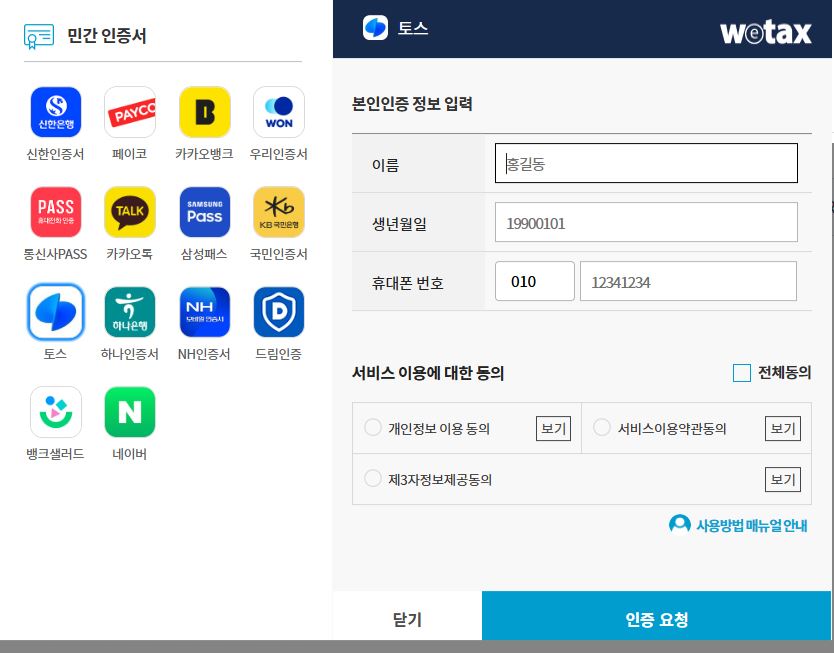 - '스마트 위택스' 앱 설치 후 이용