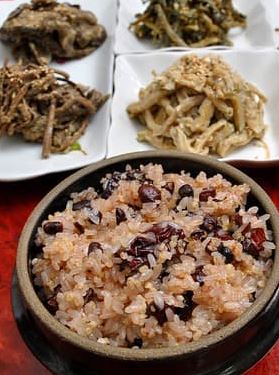 오곡밥과 9가지 나물을 먹으며 한 해의 풍년과 건강을 기원합니다. 오곡밥은 찹쌀, 콩, 팥, 수수, 기장을 섞어 지으며, 나물은 시래기, 고사리, 취나물, 곤드레나물 등이 사용됩니다..