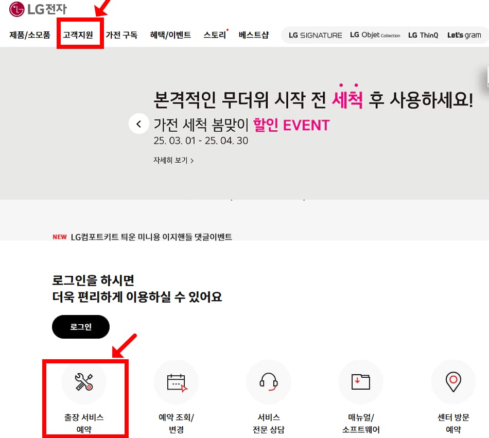 - LG전자 서비스센터 홈페이지에서 온라인 신청